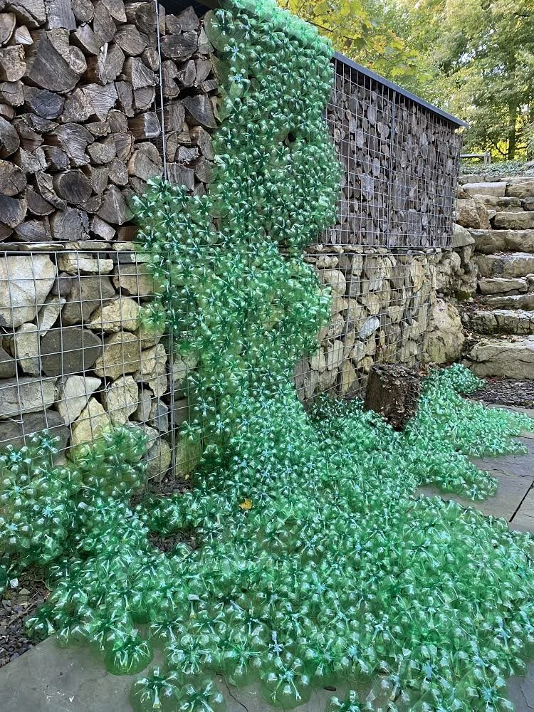 Installation made with plastic soda bottle remnants